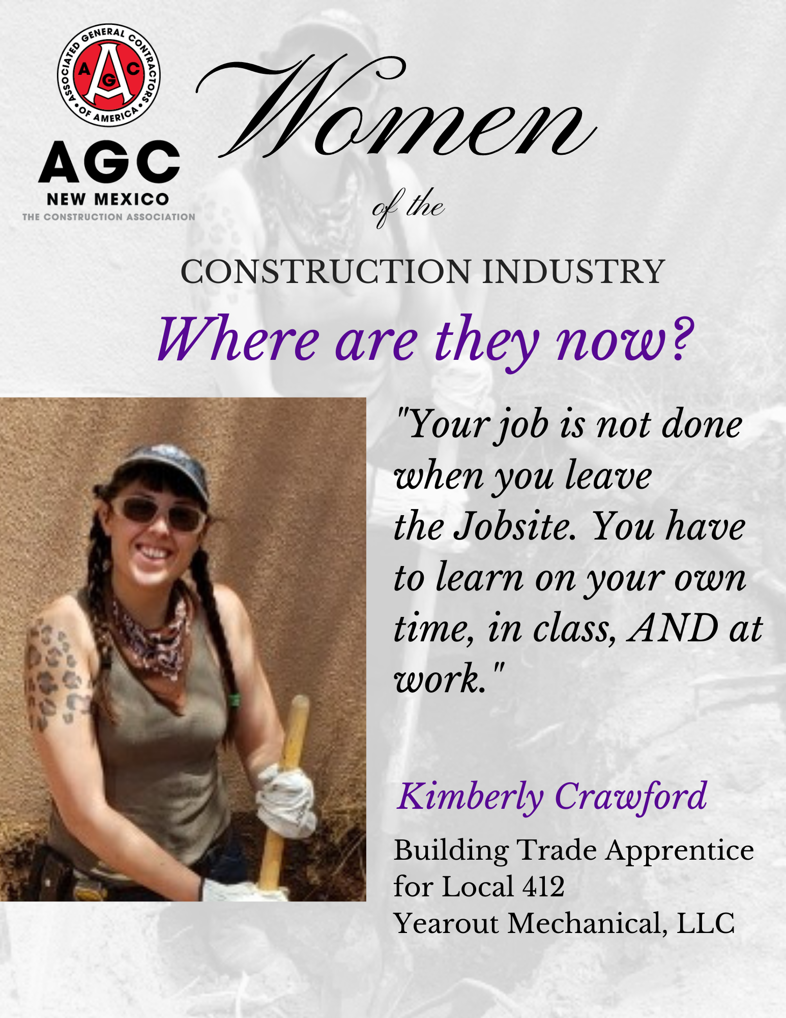 The week of March 7 we will be catching up with our previous speakers and give you an update on where they are today: Click on their profiles below“It is that amazing time of year again, when we celebrate Women in Construction! We would usually be getting together in a beautiful setting with great people, good food and drink to share our experiences as women in construction in New Mexico. Unfortunately, due to current COVID restrictions we are unable to gather for this great event, but we are hopeful that we will be able to get together later this year. In the mean time, we thought this would be a perfect opportunity to catch up on what our past speakers are doing now. Please read and enjoy the updates on each of these incredible women. Thank you for continuing to support Women in Construction and we are really looking forward to when we can all get together again!”